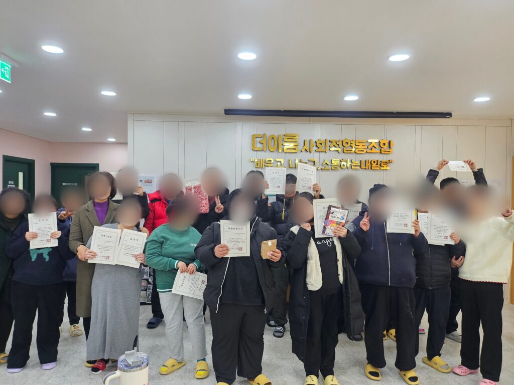 더이룸사회적협동조합은 이번 연말행사를 통해 2025년 활동을 마무리하고, 2026년에도 이용자 개개인의 속도와 특성을 고려한 주간활동 프로그램을 이어갈 계획이라고 밝혔다.